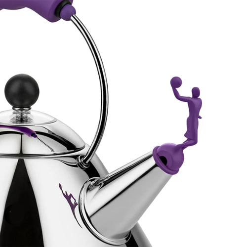 The 3909 kettle mixes different cultural aspects: the phenomenon of basketball and its multicultural imagery, an integral part of Virgil Abloh's personal history, with the world of design and its codified references. The whistle is completely redesigned, taking the form of a basketball player who crushes with power to the basket, while the colours of the handle and the knob are lit with an intense purple.