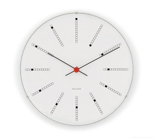 When Arne Jacobsen designed the Bankers Clock for the National Bank of Denmark in 1971, he also created a design icon for the home. This wall clock is available in four sizes, and its current design is faithful to the original drawings. With its diameter of 19", this clock is the largest in the range. The clock case supporting the concave glass front gives the clock an appearance of hovering on the wall. A great gift idea for weddings, anniversaries, birthdays, school leavers and other special occasions.