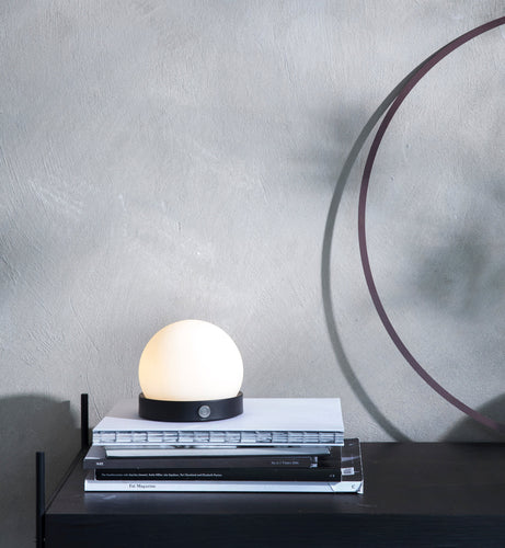 Designed as a portable, lightweight lamp, the Carrie LED Lamp is unique for its multiple uses and mutability. With a sleek, functional handle and a warm orb of light nestled gently in a basket-like base, the lamp is useful almost anywhere; even on the go, as it is cordless and comes with a USB charger. Move it from your office to your bedside table, to your evening picnic in the park and in your bicycle basket as you ride home. The cosy light created by this special piece of lighting brings comfort and sophistication wherever you are. The portable LED lamp comes in black, white, burned red, olive green and brushed brass. It offers a low, warm light in three dimmable settings perfect for creating a cosy ambience. Fully charged, it will stay on for ten hours. The lamp can also be hung on the wall by the handle, and the handle can also be easily detached.