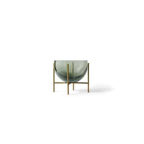 The Échasse Bowl—Available in two sizes in smoked glass and brushed brass, offers a modern, centerpiece-worthy take on the traditional serving bowl. Simple and purposeful, this is counter- and tabletop storage that is both modern and elegant.