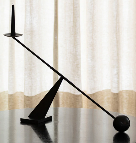 Interconnect Candle Holder is a bold and illuminating centrepiece of exaggerated proportions, designed for Audo Copenhagen by Colin King. As a source of cosy candlelight, it is characterised by its deceptively simple geometric form: a sphere, an angle and a line, which unite to create a unique design. Available in polished brass or painted steel, it goes beyond its intended use to function as a sculpture.