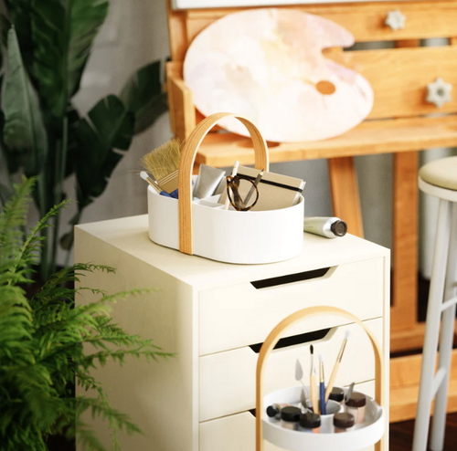 Organize your everyday essentials with Bellwood Caddy. This versatile storage solution can be used for makeup, skincare, craft supplies, stationery and more. Easy to clean, Bellwood Caddy provides easy access with an integrated handle if you need to bring it with you on the go. Its removable divider makes it easy to organize and keep products upright, while its rubber feet protect your surfaces from damage. This modern caddy is part of the Bellwood Collection including Bellwood Organizer, Storage/Planter, Coffee Table, Wall Shelf, Freestanding Shelves and more!