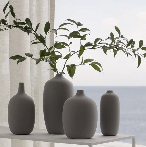 The surfaces of the CEOLA series are made of resistant ceramics, glazed but left a bit course. Small bumps, slight color variations and visible lines are the result of the production process and add to the natural look as well as the unique character of every single vase. Gather a few of your favorite flowers – or simply collect wild twigs that add a rustic, natural feel to your interior décor.