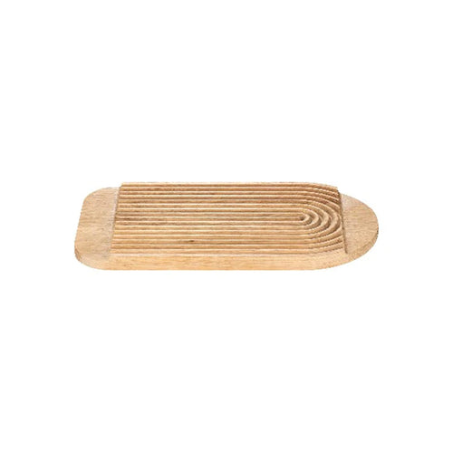 Blomus' Zen Cutting Board - Tray is the perfect two-in-one design made of beautiful solid oak. Simple geometric shapes make this kitchen design a must-have. One side of the board features wood grooves which catch and contain crumbs from bread and rolls as they are cut. Turn the board over and it doubles as an elegant serving tray with slim, raised edges and easy to hold sides.
