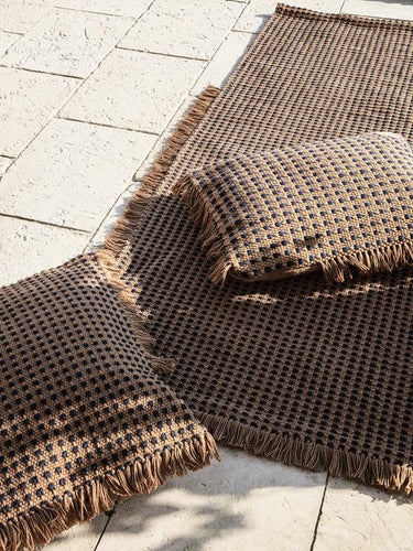 By upcycling used plastic bottles, the Way series presents an incredibly durable line of sustainable designs which can be used outside. The woven recycled polyester gives the items a lovely texture in colours associated with the maritime motif. The mat has a classic look with a twist created by the asymmetry of the fringes along two sides.