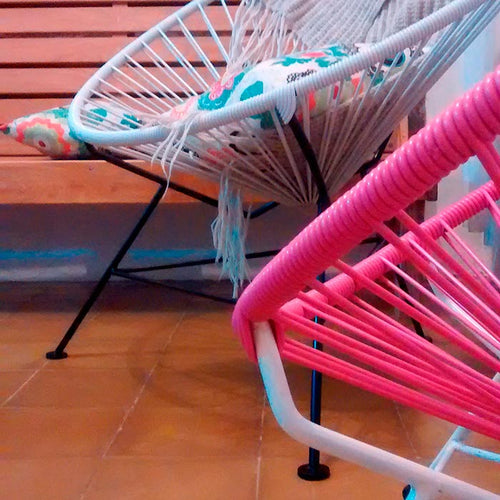 Made in Canada and inspired by the Mayan techniques of hammock weaving, the Innit chair combines traditional techniques with modern materials. Thanks to the flexible yet durable vinyl weaving which cradles the body, these chairs are incredibly comfortable. Featuring a perfectly circular body, the Condesa is more upright than the Acapulco chair. Perfect for indoor and outdoor use, and are great in all seasons. Bases are available in black or white, and in regular or rocking versions. Available to special order in a wide range of colors. Please contact us for more information.