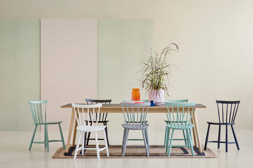 FDB Møbler’s J46 chair is a Danish design classic by Poul M. Volther from 1956. When first released, the J46 was a fresh contrast among the typical, heavier dining chairs of its age. Made of solid beech, the J46 chair combines a V-shaped spindled backrest with a wide, comfortable seat. The lightweight chair will suits various decor styles, and is a timeless addition to your home.