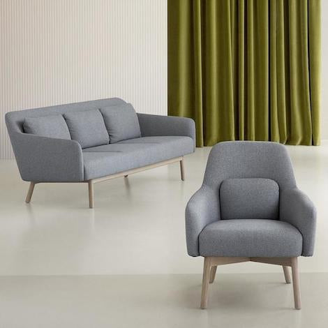 Designed by Foersom & Hiort-Lorenzen for FDB Møbler, it has an upholstered shell resting on a slim oak wood frame and legs. The airy base structure gives the sofa a floating appearance, and three cushions add softness and comfort. Durable, easy to maintain and pleasant to touch.