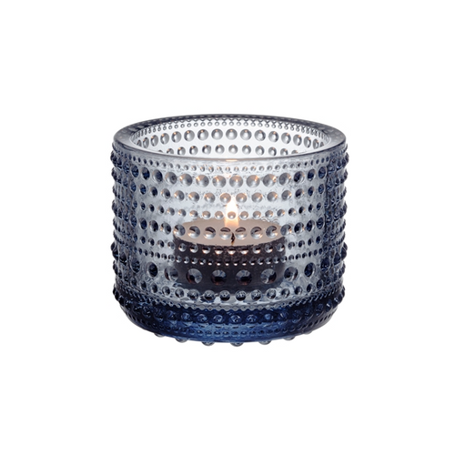 Iittala’s Kastehelmi tealight candleholder is part of the glassware collection designed by Oiva Toikka in 1964. Decorated with strings of glass bubbles, the aqua Kastehelmi tealight candleholder is enchanting both as a single piece and placed in eye-catching clusters.
