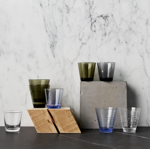 Iittala's Kastehelmi tumblers are part of the popular glass collection designed by Oiva Toikka. In 1964 Toikka’s aim was to design a pattern that would conceal the joint marks in pressed glass. The result was Kastehelmi, Finnish for dewdrop, that features delicate glass droplets arranged in a series of rings. Kastehelmi became one of Toikka’s most beloved series of glassware and it was manufactured until 1988. The most popular items were brought back to Iittala’s production in 2010. Kastehelmi plays with light in the most beautiful way and suits any table setting. The 10.14 fl oz (3 dl) tumblers come in a set of two.