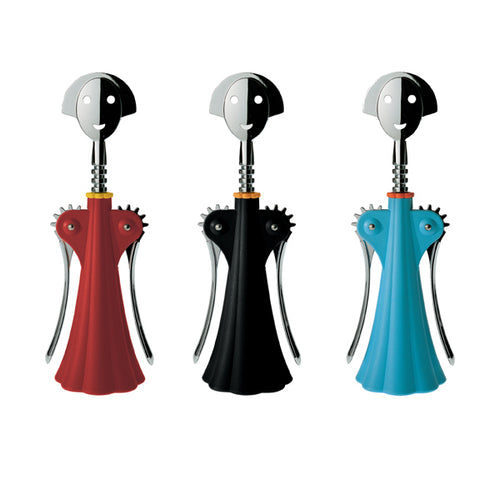 A best seller since it was first produced in 1994, the Anna G. corkscrew is a tongue-and-cheek homage to a real woman. Her smiling face has become something of a cult figure over the years, giving birth (so to speak) to a rich family of objects for the table and kitchen in a wide range of materials.
