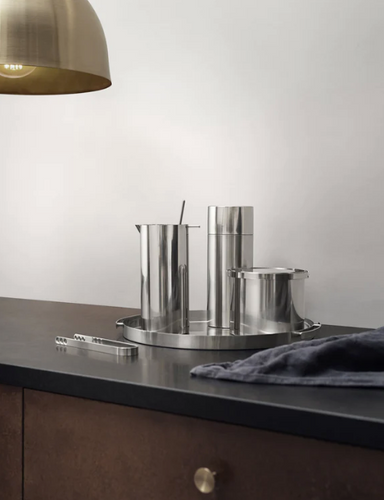 The Arne Jacobsen serving tray in the Cylinda-line series even has cylindrical handles, which makes it easy to lift with the coffee pot or with barware from the iconic collection. The serving tray is made of stainless steel and the diameter is 33.5 cm.