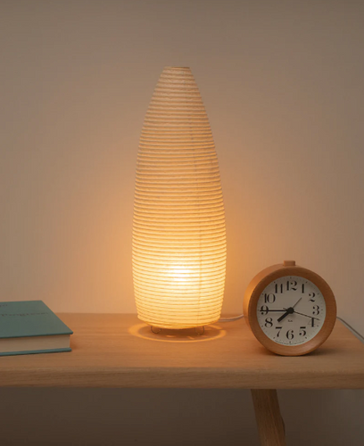 Japanese manufacturer Asano delicately handcrafts each lamp in the Gifu prefecture using high grade Washi paper and a spiral rib of bamboo. The process involves wrapping the bamboo around wooden forms and then glueing and applying each panel separately until the entire surface has been papered: a laborious and highly skilled endeavour.