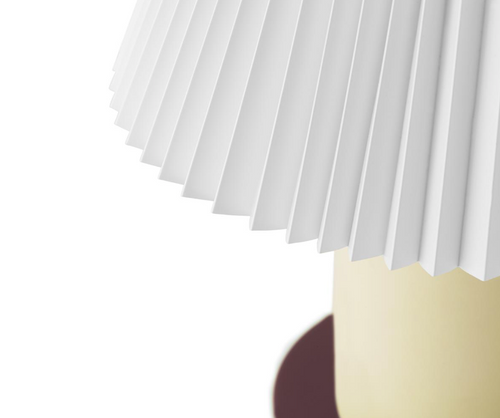The lampshade indicates the design's clear references to the iconic, pleated lampshades. An element that has been preserved, while the design as a whole was infused with a contemporary, updated aesthetic that accommodates modern interiors. The base has a particularly characteristic, enlarged expression which is further emphasized by the eye-catching and playful color combinations of the powder coating. Thus, Cellu is an obvious union of new and old, beautifully put together in a design that draws references both to classic craftsmanship and new, modern design principles.