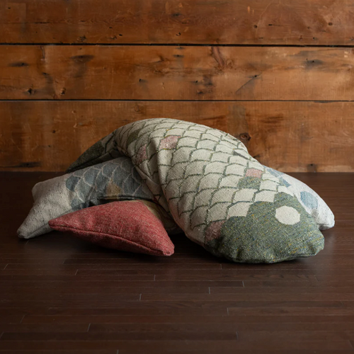 The FISH pillow is a flatweave kilim made on a hand loom. The inside of the pillow is made of cotton canvas with a hidden zipper, filled with shredded Memory Foam.