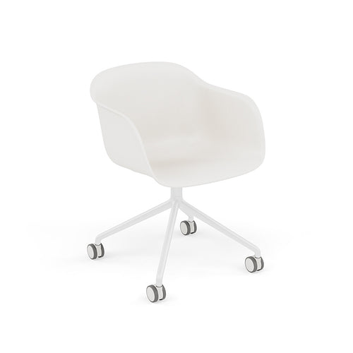Muuto Fiber Arm Chair, Swivel Base w. Casters + Gas Lift, natural white Seat, White Base +white castors $889.00