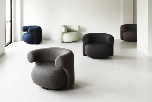 Burra is a sculptural lounge chair with a characteristic soft expression. The rounded seat is fitted with a swivel function with the possibility of an optional return swivel function for additional mobility. Burra is crafted for maximum comfort. Inside, a steel reinforcement structure provides stability and strength, while a combination of elastic bands, hard molded foam and soft molded foam ensures soft seating comfort.