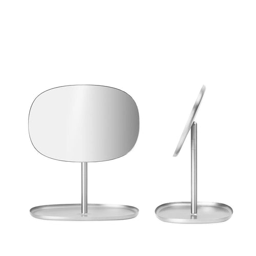 Creating a simple mirror that offers a little bit more, was the ambition of the Spanish design studio, Javier Moreno Studio, creators of Flip. Flip is inspired by the traditional dressing table where one can check ones appearance in the mirror and at the same time keep all the small items that are nice to have close at hand before leaving the house.Javier Moreno Studio says: "Typically, a mirror has only one function, but I wanted to design a mirror that could offer more. You usually look in the mirror just before leaving the house, so why not let it be there where you keep the last things you use to get ready, or need to remember just before you go?"Javier Moreno Studio consciously avoided a geometric design for Flip. They wanted to use a freer and more organic shape for the mirror instead. The softness of the silhouette contrasts the glass and steel materials and gives Flip a friendly and accommodating expression.Place Flip on a chest of drawers in the hallway or use it as a make-up mirror in the bedroom.
