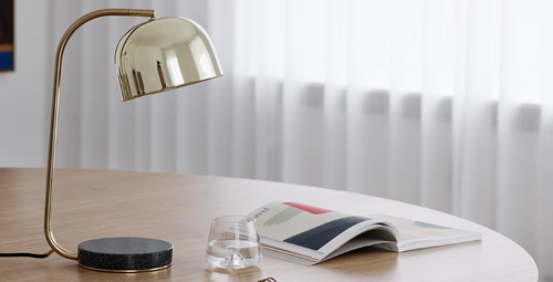 The Grant table lamp is a sophisticated desk lamp for the home office, but is equally suitable for the bedside table or side table in the living room. Tilt the lamp shade to determine the direction of the light and turn the cord's dimmer switch to switch between soft, atmospheric lighting and bright reading light.