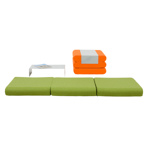 The Bingo  is a multi-functional 3 in 1 design: a seat, a table, and it also folds out to become a single bed! It features a removable cover for easy cleaning, and is compact and suitable for small spaces. Price includes metal tray top.