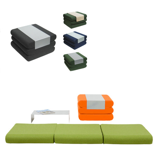 The Bingo is a multi-functional 3 in 1 design: a seat, a table, and it also folds out to become a single bed! It features a removable cover for easy cleaning, and is compact and suitable for small spaces. Price includes metal tray top.