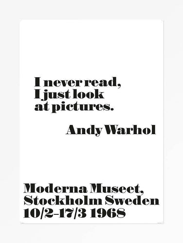 Moderna Museet Stockholm Andy Warhol Poster, “I Never Read, I Just Look At Pictures” Unframed $100.00