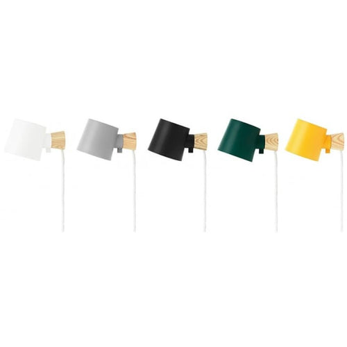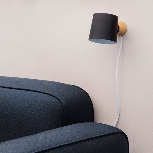 The wooden base in ash forms a beautiful contrast to the raw, industrial shade. A turning joint makes it possible to rotate the shade and thus change between direct and indirect lighting, making it perfect as both a reading lamp and as mood lighting. With its minimalistic design and choice of materials, the Rise wall lamp integrates easily into any interior design.