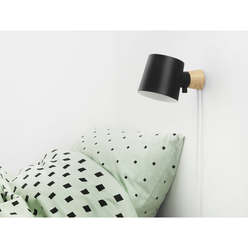 The wooden base in ash forms a beautiful contrast to the raw, industrial shade. A turning joint makes it possible to rotate the shade and thus change between direct and indirect lighting, making it perfect as both a reading lamp and as mood lighting. With its minimalistic design and choice of materials, the Rise wall lamp integrates easily into any interior design.