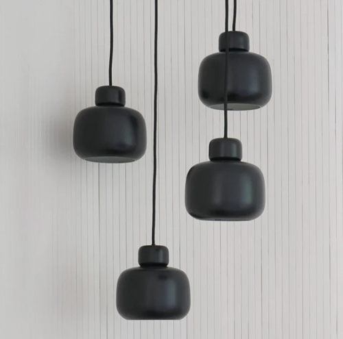 woud Stone Pendant (Small), Black Painted Metal $409.00