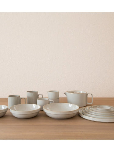 HASAMI PORCELAIN is made of a mixture of porcelain substance and clay, at a specific ratio. Samples made precedently in Hasami were recreated, and a glaze was developed to bring out the natural material.HASAMI PORCELAINÕs straight lines represent the essence of traditional Japanese aesthetics. The curves are the result of the inevitability of function and production.