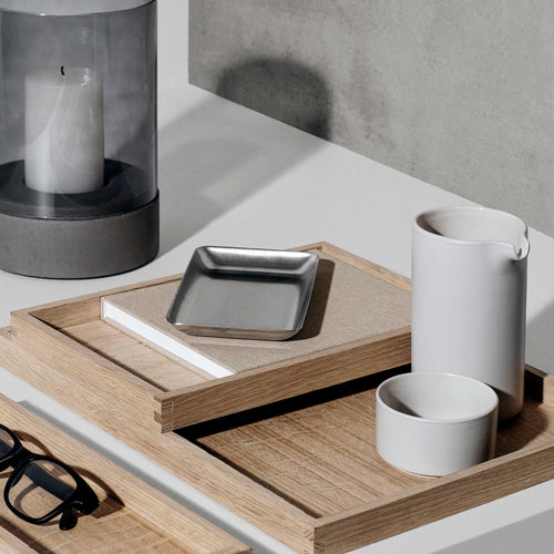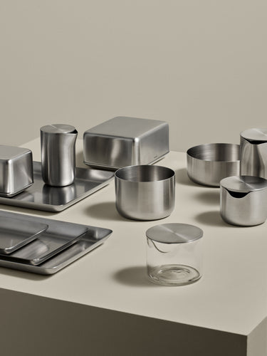 This line of stainless steel trays, are designed with clean lines using timeless brushed stainless steel. Mix and match blomus BASIC trays, condiment holders and snack cups for a timeless presentation at breakfast, tea time or cocktail hour.