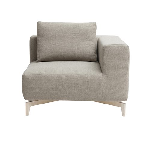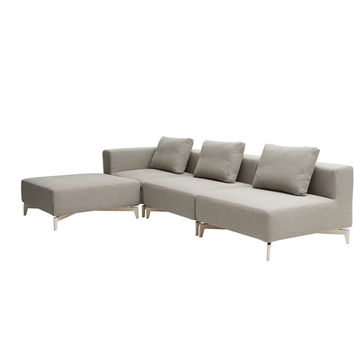 The Passion is a modular sofa system. It is comprised of 3 elements: A corner, single, and a footstool. The elements are purchased individually and are easily combined to create unlimited combinations. It therefore is suitable to both small and large spaces. Each piece is approximately a one meter cube, and therefore they fit together on all sides. For example, the corner can be rotated to be a left or a right. The elements also come with straps which allow them to be held together on the underside.