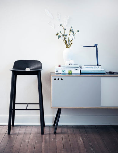 Mono bar stool by Woud reshapes traditional Scandinavian wood design with a new plywood technique. Created by the Finnish designer Kasper Nyman for the Danish brand Woud, Mono chairs were inspired by a shape of a folded paper cone – the overlapping construction of the seat is enabled by a thermoformable Grada wood that can be shaped into more challenging forms than ordinary plywood. The result is a smooth, simple and extremely sophisticated wooden chair, perfected with a beautiful drop-shaped hole. The chairs of the Mono collection are manufactured in Denmark.