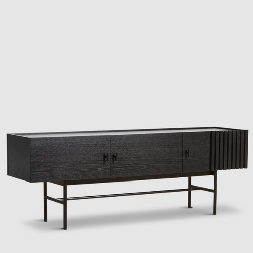 Array Low Sideboard (150 cm), Black Painted Oak with Black Painted Metal Legs