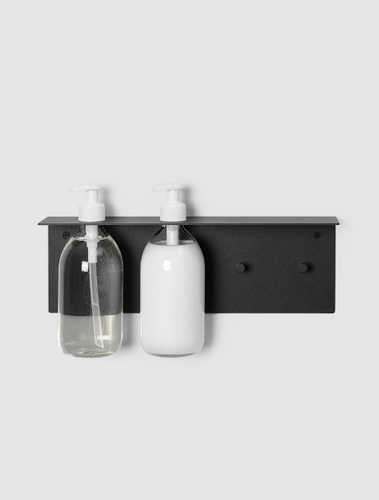 The Dora family is a series of furnishings that are ideal for the bathroom. Made from powder-coated stainless steel, the simple yet functional designs are rust-resistant, so are ideal for use in damp conditions. The Dora Bathroom Shelf features two holes for your favourite pump bottles, allowing you to smartly suspend them from the wall, as well as two hooks from which you can hang brushes or shower sponges. Mount the minimalistic shelf on your bathroom wall to add a modern, functional element to your bathroom space.