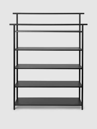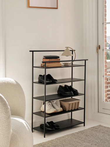 The Dora collection is a series of furnishings based on the principles of simple yet functional design. Made from powder-coated iron, the sleek and modern Dora Rack features five spacious shelves. The versatile piece is ideal for storing shoes in the hallway or for neatly organising various items throughout your home.