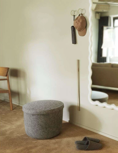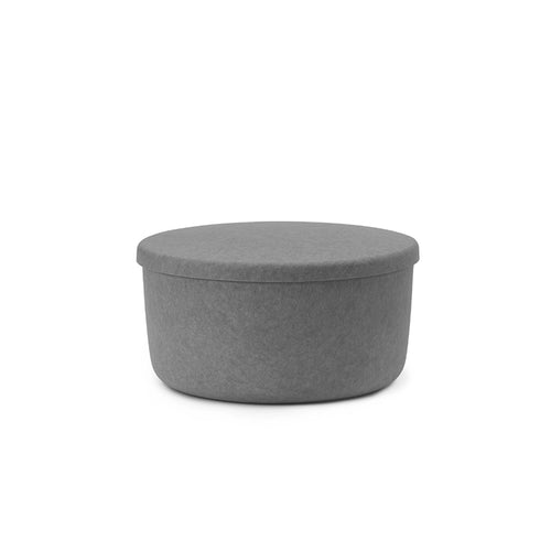 Hide Storage Pouf is a storage and pouf in one. Hide is made from PET felt, which consists of post-consumer plastic bottles which are extruded into polyester fibers and then pressed into felt. The seat of the pouf can be removed, revealing the hollow space inside which makes the design convenient for storage purposes.