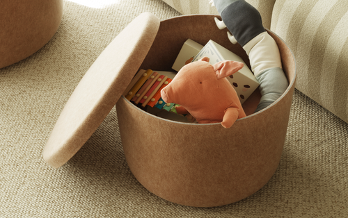 The Hide Storage Pouf's design ingeniously incorporates the concept of hidden storage. The seat of the pouf cleverly doubles as a lid that can be easily removed, unveiling a spacious hollow space inside. This feature allows you to conveniently store toys, blankets, cushions, or any other items you wish to keep close at hand, while maintaining a clean and clutter-free living area.