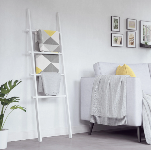 Note: Leana Ladder is not intended for climbing, with a maximum weight of 5lbs per rail. Leana ladder’s versatile design can be used to display beautiful linens or to organize those articles of clothing that often end up in pile beside your bed. even heavier items, such as towels or jackets, can be hung with ease; keeping them neat and organized.