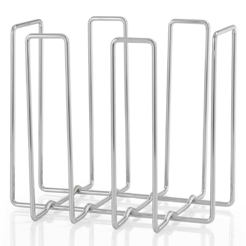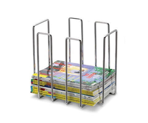 The blomus wire Magazine Holder provides organization for magazine storage. Keeps magazines orderly for reference or recycling. 13 1/4'' x 11'' x 11 7/8''. Available in chrome plated or black powder-coated steel.