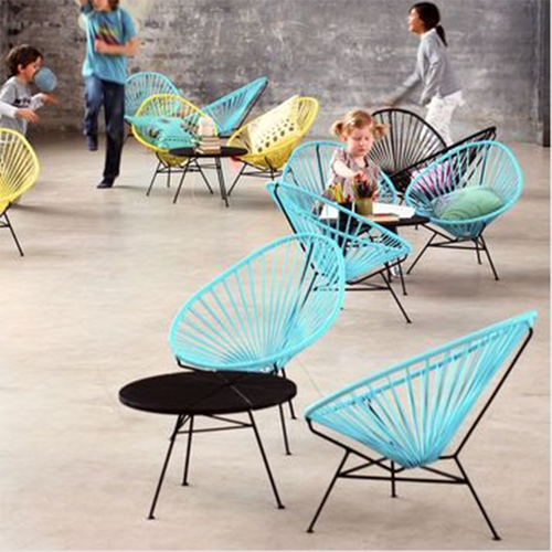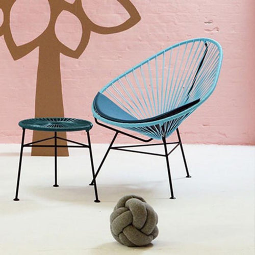 Made in Canada and inspired by the Mayan techniques of hammock weaving, the Acapulco chair combines traditional techniques with modern materials. Thanks to the flexible yet durable vinyl weaving which cradles the body, these chairs are incredibly comfortable. The avocado shaped form makes this chair perfect for lounging. They are perfect for indoor and outdoor use, and are great in all seasons. Available with black or white bases, and in regular or rocking versions. Available to special order in a wide range of colors. Please contact us for more information.
