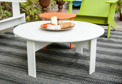 This round outdoor cocktail table is part of Loll Designs’ modern satelite collection. Made from heavy, 1-inch-thick recycled plastic, it is available in several environmentally conscious colors. The Satellite Outdoor Cocktail Table is also available in rectangle or oval versions.