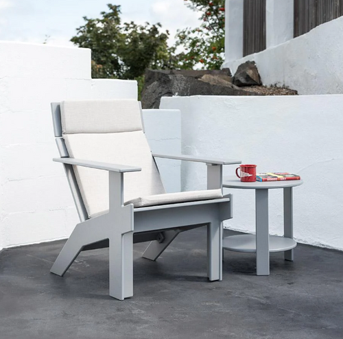 This outdoor lounge chair features taller legs that add about 4 inches of seat height to our classic Lollygagger chair. When you slide in, you’ll find all the angles feel just right, with two back planes – one lower and one right at your shoulders – that add an unexpected level of comfort. Better yet, it has an integrated bottle opener hidden under the right arm.