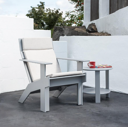 This outdoor lounge chair features taller legs that add about 4 inches of seat height to our classic Lollygagger chair. When you slide in, you’ll find all the angles feel just right, with two back planes – one lower and one right at your shoulders – that add an unexpected level of comfort. Better yet, it has an integrated bottle opener hidden under the right arm.