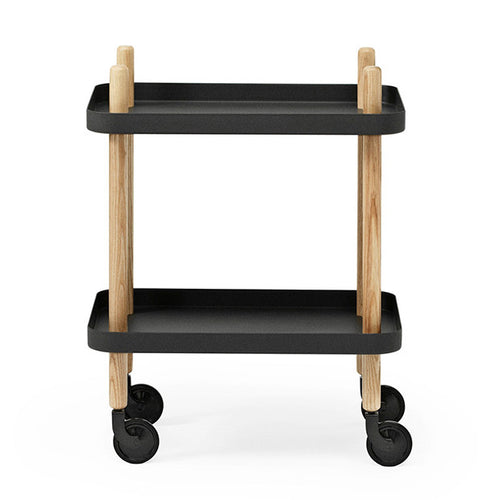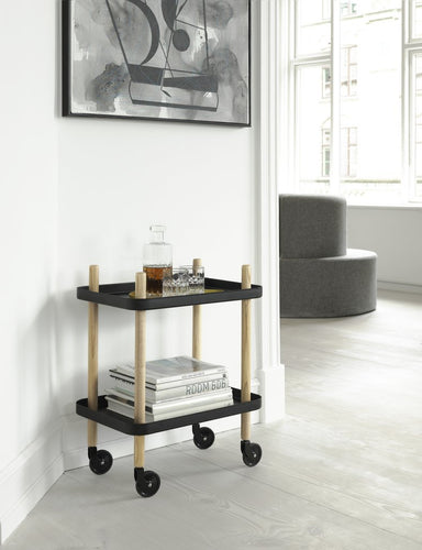Block is a mobile side table on wheels that has a light and airy expression. It is a versatile piece of furniture with many different functions in the home. Block can be easily moved around using its four handles, which are natural extensions of the legs. Use Block as a side table, tea table, bar cart, coffee table or bedside table.