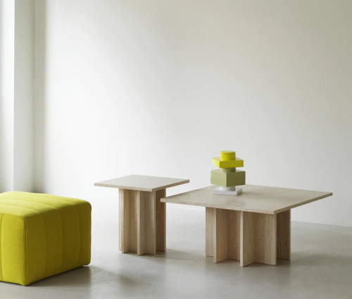 Edge is designed with minimalistic design principles for a timeless, yet captivating expression. The table is crafted from 100% travertine, an interesting and timeless material distinguished by its extraordinary structure and unique patterns. To minimize unnecessary waste, Edge is designed to utilize the way the travertine material is sourced. The natural stone is quarried from a travertine quarry, then cut into slabs of different sizes. Edge Coffee Table consists entirely of square travertine slabs in varying sizes, assembled in a simple, geometric construction. This way, the different slabs are used to make the most of the material.