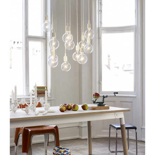 This is an accessories set for the E27 lamp with ceiling cap. A subtle design to top off the instillation of your new E27 lights! Connects up to 14 lights for a chandelier or cluster effect. The regular ceiling plate kit should be used for a single light.