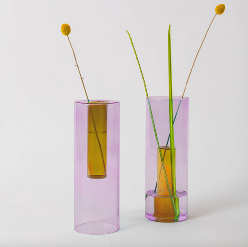 block Design Reversible Glass Vase - Large - Lilac / Peach $85.00