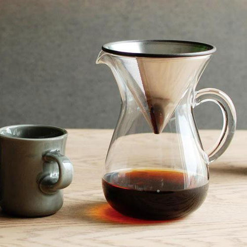 SLOW COFFEE STYLE encourages you to slow down and enjoy the meditative aspects of brewing pour over coffee. It can be a joyful and relaxing part of your morning, whether it's just how you start your morning routine or an essential part of your daily mindfulness practice. And whatever you're brewing with, it needs to make delicious coffee and please the eye while it's working its magic. That's where this carafe set comes in, the organic form of the glass combined with a stainless steel filter that extracts coffee oil and brings out richness and aroma in the brewed coffee hits both of those marks.