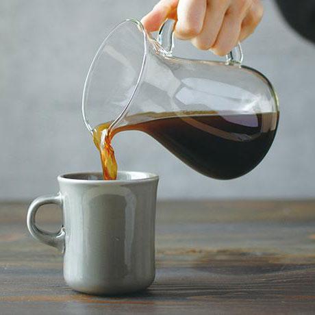 A mark on the carafe indicates 2 cups of dripped coffee. The holder can be used to measure the amount of coffee beans as well as to place the filter after use. Marks on the holder indicate 10g and 20g of coffee beans. All parts are stackable for compact storage.